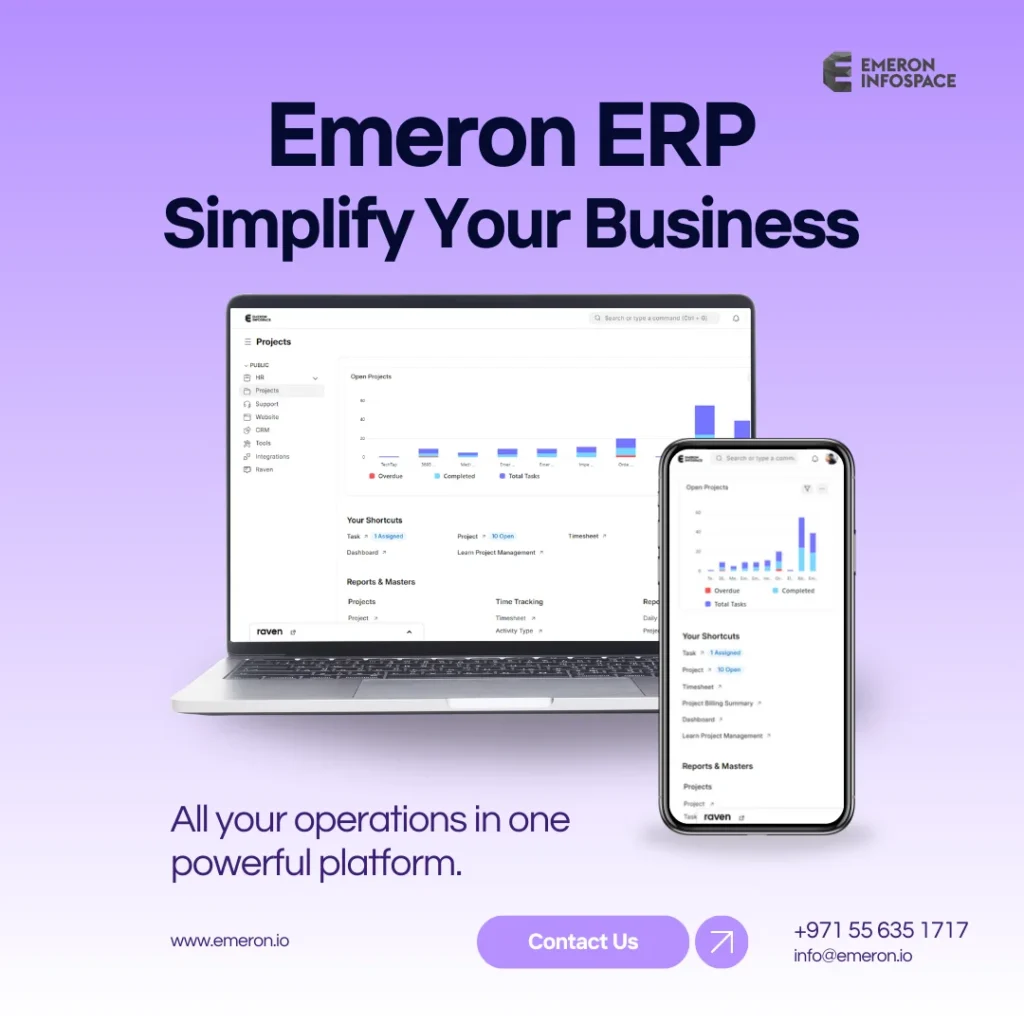 Emeron Infospace delivers a production-ready ERP system tailored for UAE’s growing manufacturing and industrial sector.